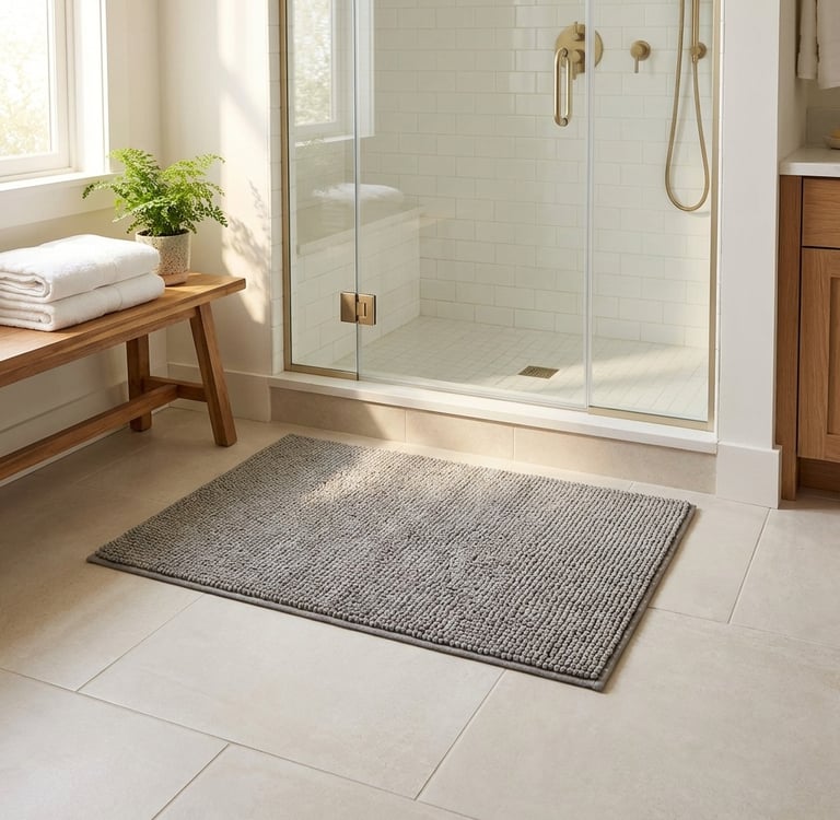 A bathroom floor can look dry and still be slippery—especially with soap film or humidity.