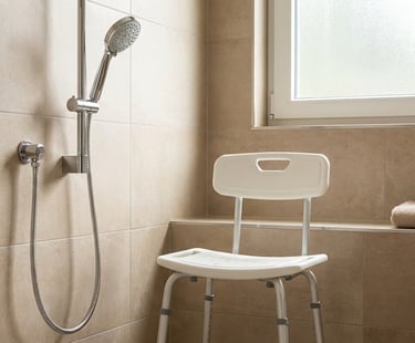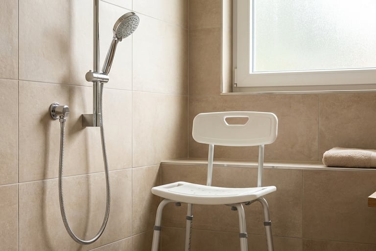 Shower chair + handheld shower head (safer bathing)