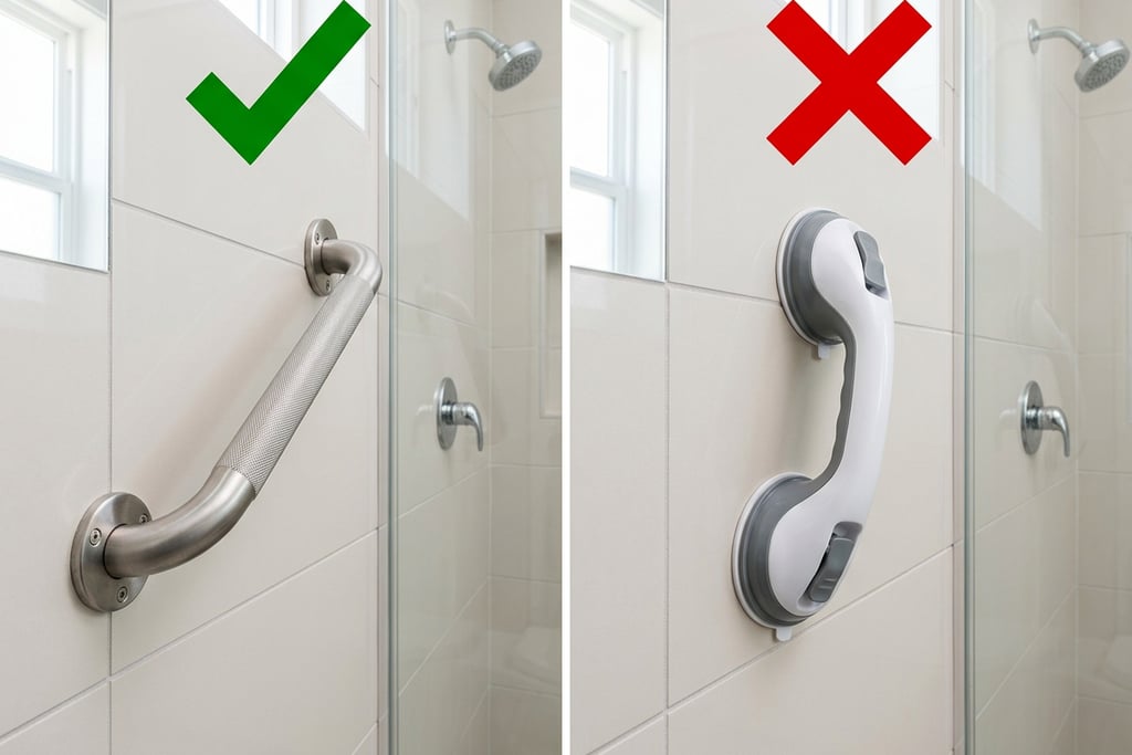 Shower grab bars are one of the simplest upgrades that can significantly reduce the risk of bathroom falls.